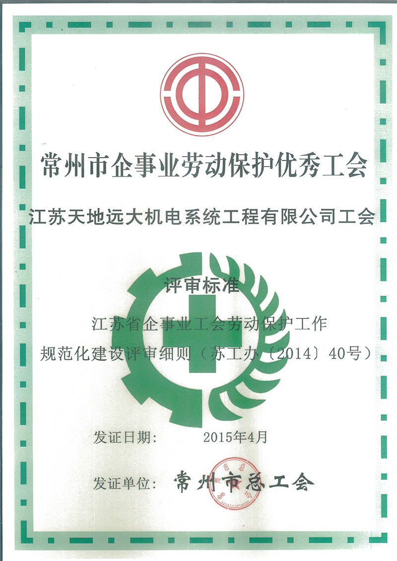 近(jìn)期,我(wǒ)公司(sī)工會(huì)榮獲常州市(shì)總工會(huì)頒發的(de)2014年度“常州市(shì)企事業勞動保護優秀工會(huì)”稱号。 為(wèi)進一步規範企事業工會(huì)勞動保護工作,使工會(huì)勞動保護的(de)有關法規和各項職權真正得到落實,提高(gāo)勞動保護工作水(shuǐ)平,維護職工權益,市(shì)總工會(huì)開展創建“企事業勞動保護工作^工會(huì)…